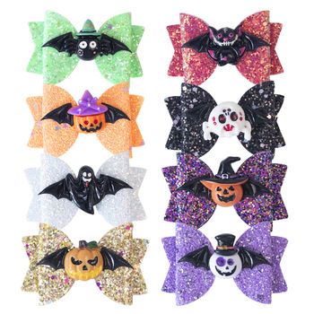 Horquillas de calabaza de demonio para niñas, horquillas con lazo de Halloween, diseño de vacaciones, decoración de fiesta, accesorios para el cabello, venta al por mayor