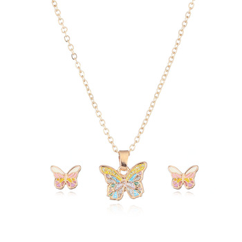 Nuevas niñas pendientes collar joyería aleación goteo aceite cebollín polvo mariposa estudiante niños joyería